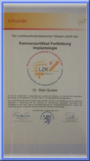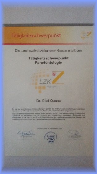 Parodontologie ( Zahnbetterkrankung ) wurden durch intensive Fortbildung ( LZKH ) sowie